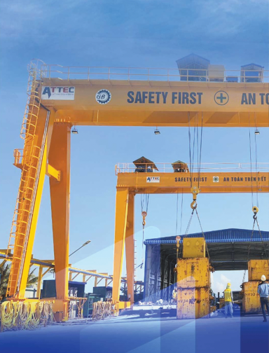 ATTEC đã thực hiện nhiều dự án tiêu biểu trong lĩnh vực thiết bị nâng hạ công nghiệp, từ các hệ thống cầu trục, cổng trục cho nhà máy sản xuất đến các giải pháp nâng hạ chuyên dụng tại công trình xây dựng và khu công nghiệp. Với mỗi dự án, ATTEC luôn chú trọng tính an toàn, hiệu quả và độ bền vững, mang lại sự tin cậy tuyệt đối cho khách hàng. Thành công của các dự án chính là minh chứng cho năng lực kỹ thuật và uy tín mà ATTEC đã xây dựng trong suốt quá trình phát triển.